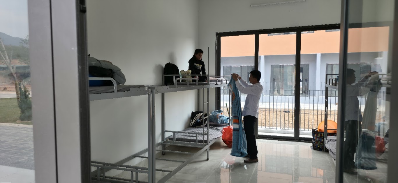 Khép lại chương trình chung, tại khu vực nội trú không quản ngại vất vả, trực tiếp Thầy Hiệu trưởng Nguyễn Văn Dúp cùng các thầy cô giáo đã có mặt tại từng phòng để tận tay hướng dẫn các em học sinh làm quen với nền nếp sinh hoạt mới. Hình ảnh người thầy đứng đầu nhà trường cùng tập thể sư phạm ân cần chỉ bảo các em từ cách vuốt nếp, gấp chăn màn vuông vắn, sắp xếp tư trang gọn gàng đến việc dọn dẹp vệ sinh phòng ở đã để lại ấn tượng sâu sắc. Không chỉ vậy, các em còn được thầy cô hướng dẫn chi tiết về văn hóa xếp hàng, cách lấy khay và những quy tắc lịch sự khi dùng bữa tại nhà ăn tập thể. Sự chăm chút tỉ mỉ, "cầm tay chỉ việc" từ những điều nhỏ nhất ấy đã thực sự xóa nhòa đi sự bỡ ngỡ ban đầu, giúp các em cảm nhận được tình yêu thương ấm áp như đang ở chính ngôi nhà của mình.