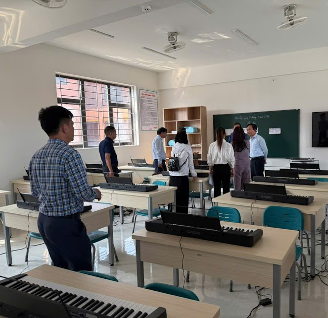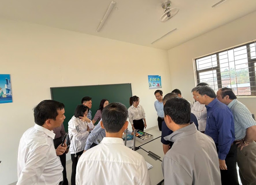 Trong khuôn khổ chương trình, Đoàn công tác đã trực tiếp đi tham quan khuôn viên và cơ sở vật chất khang trang của nhà trường. Các đại biểu đã đến thăm các lớp học đang trong giờ lên lớp, khu nhà ăn nội trú, phòng Tin học hiện đại, phòng âm nhạc. Đặc biệt, Đoàn công tác dành sự quan tâm và ấn tượng mạnh mẽ khi tham quan Phòng học STEM & AI – nơi các em học sinh vùng cao Si Pa Phìn đang được tiếp cận với những công nghệ giáo dục tiên tiến nhất như lắp ráp Robot, lập trình điều khiển và Trí tuệ nhân tạo.